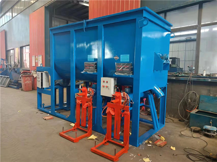 該設備為全自動干粉砂漿攪拌機,整機四角加上料計量,適合多種物料混合的攪拌,設定好斤稱之后,物料由提升機上料,斤稱達到自動停止,然后接著上第二種物料,以此類推,計量準確,省時省力;出料系統設計也是電腦計量裝置,無需人工二次稱重,閥口袋包裝,無需再次封口,出料速度快,4秒一袋,1人即可操作,省時省力;攪拌機機身為臥式U型筒體,內部由內外兩層螺帶交錯布置,攪拌均勻,混合速度快,5至8分鐘即可攪拌均勻,出料可根據不同物料的實際需求定做多個出料口。